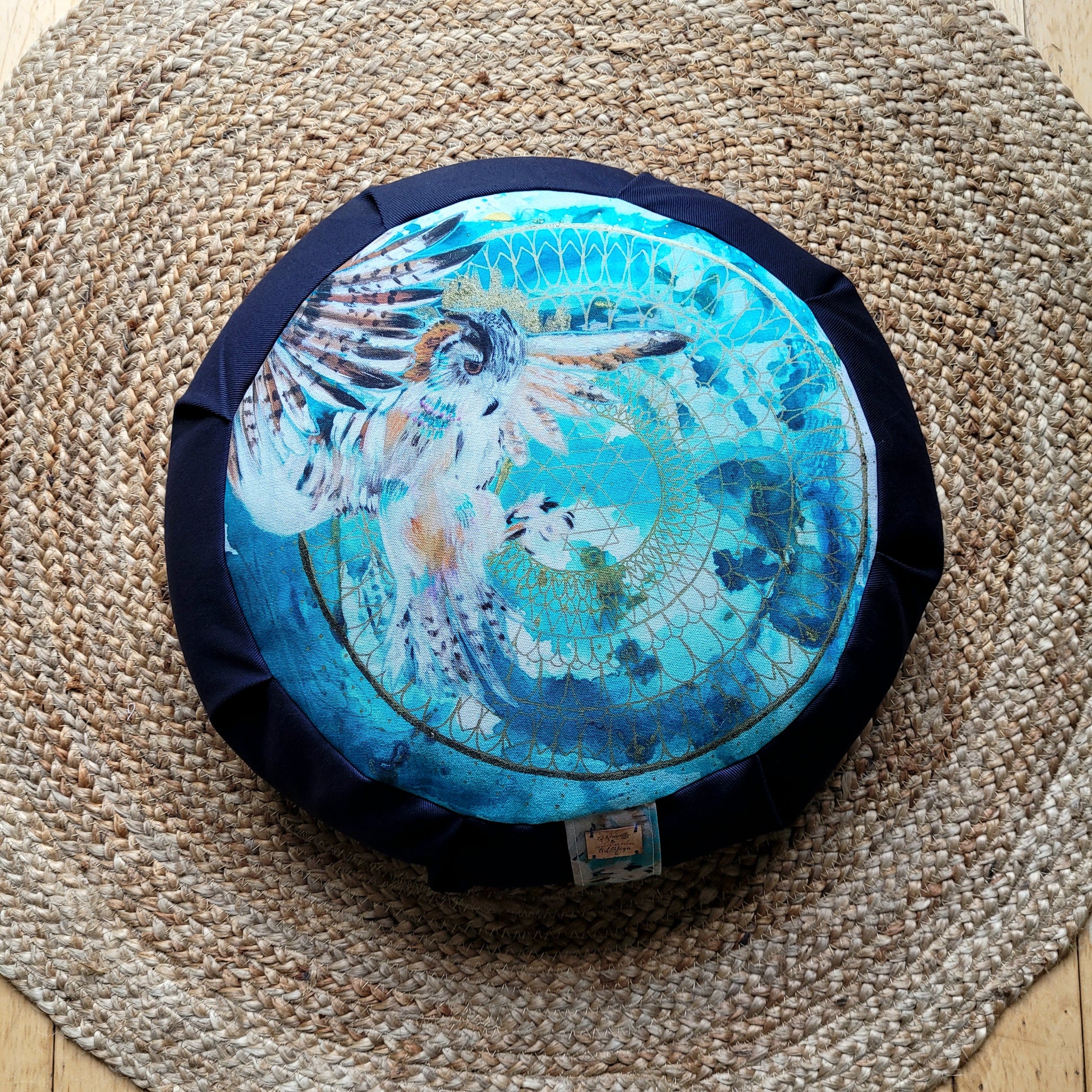 Coussin de méditation avec œuvre originale Portail d'oiseaux