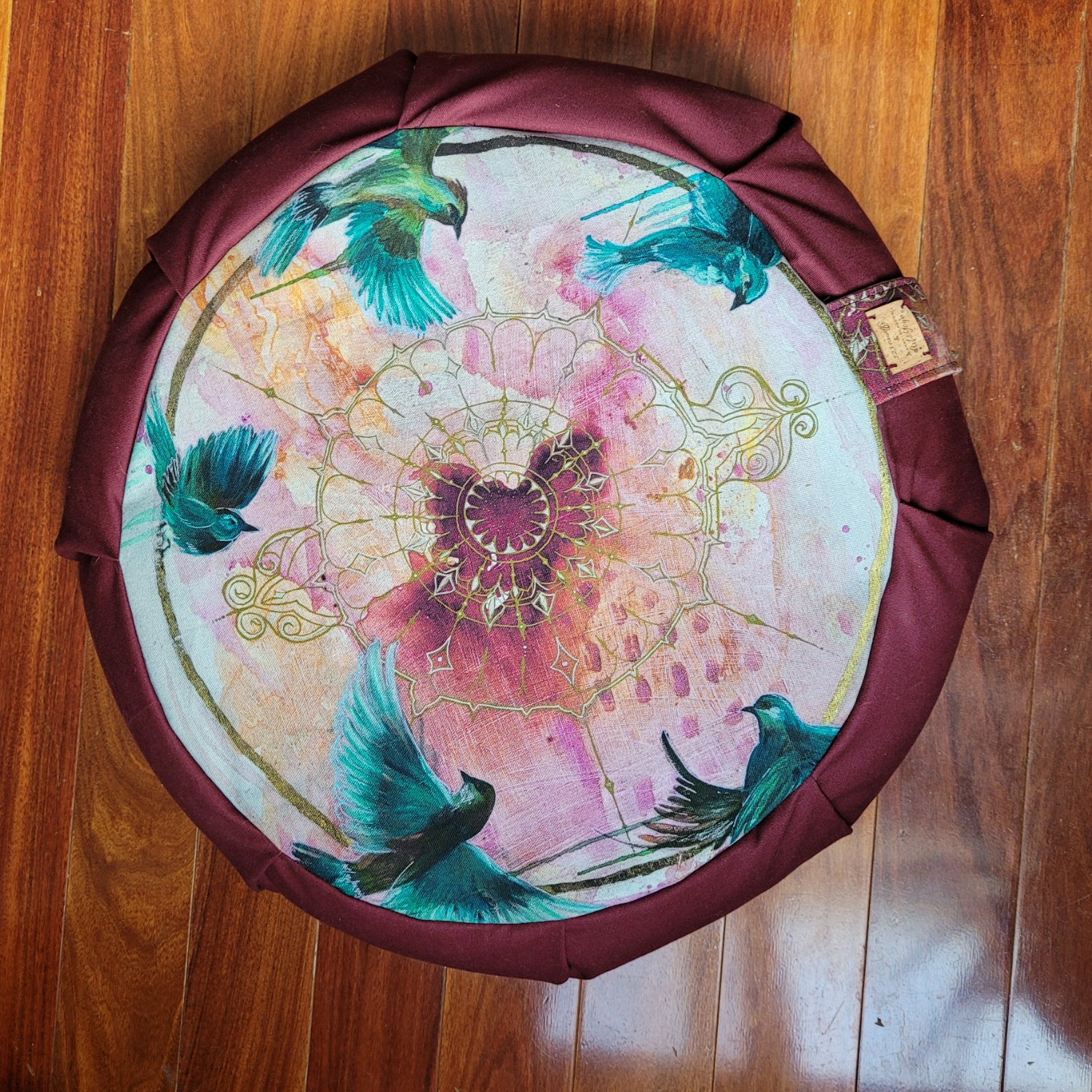 Coussin de méditation avec œuvre originale Portail d'oiseaux