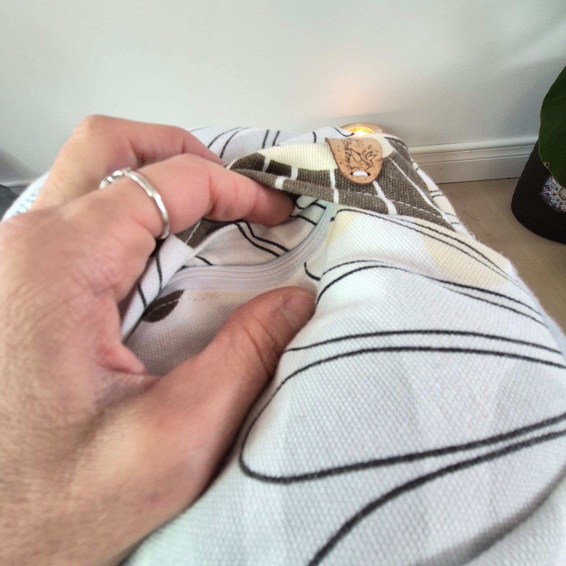 Entretien : Retirer les écales, laver la housse à basse température et suspendre pour sécher.